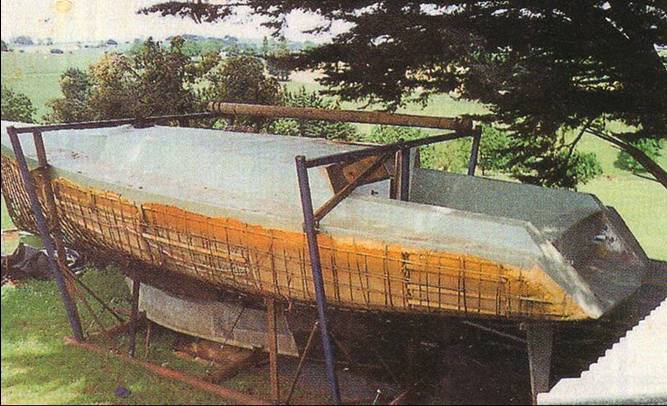 Construction using the Bourne methodThe first step in the construction is to create the basic hull shape with steel mesh normally used in the construcion industry.