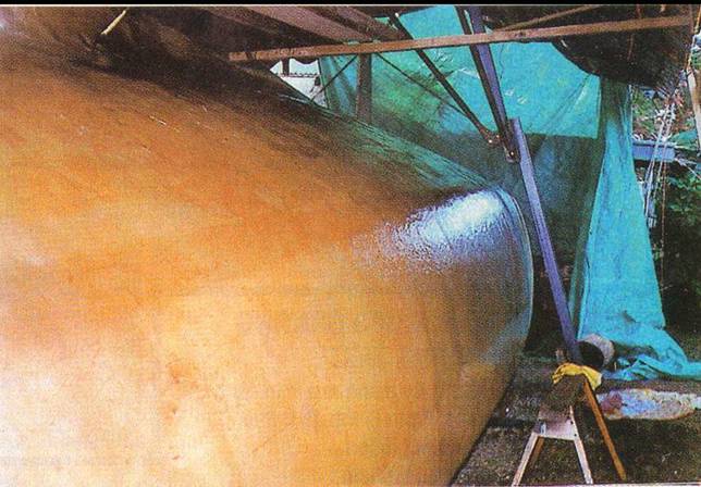 The deck is then foamed with spray on polyurethane foam. The foam is then sanded and faired before the deck is fibreglassed.